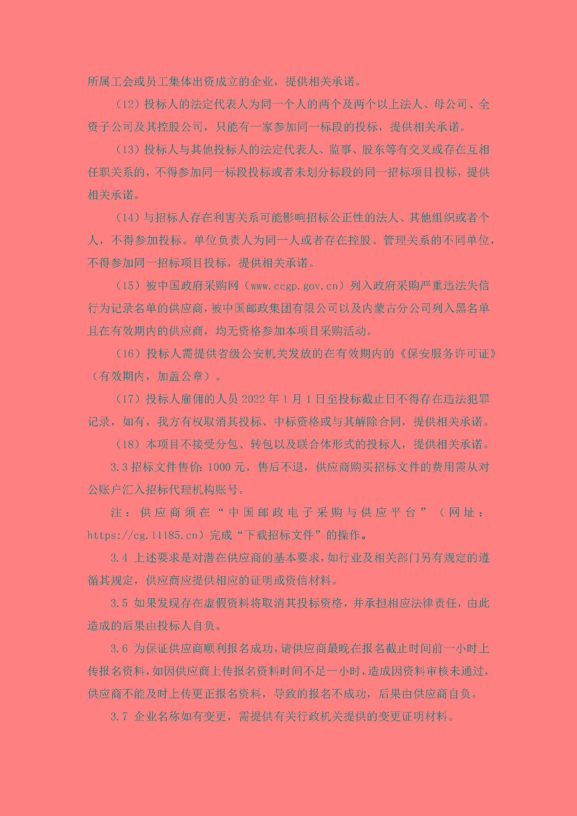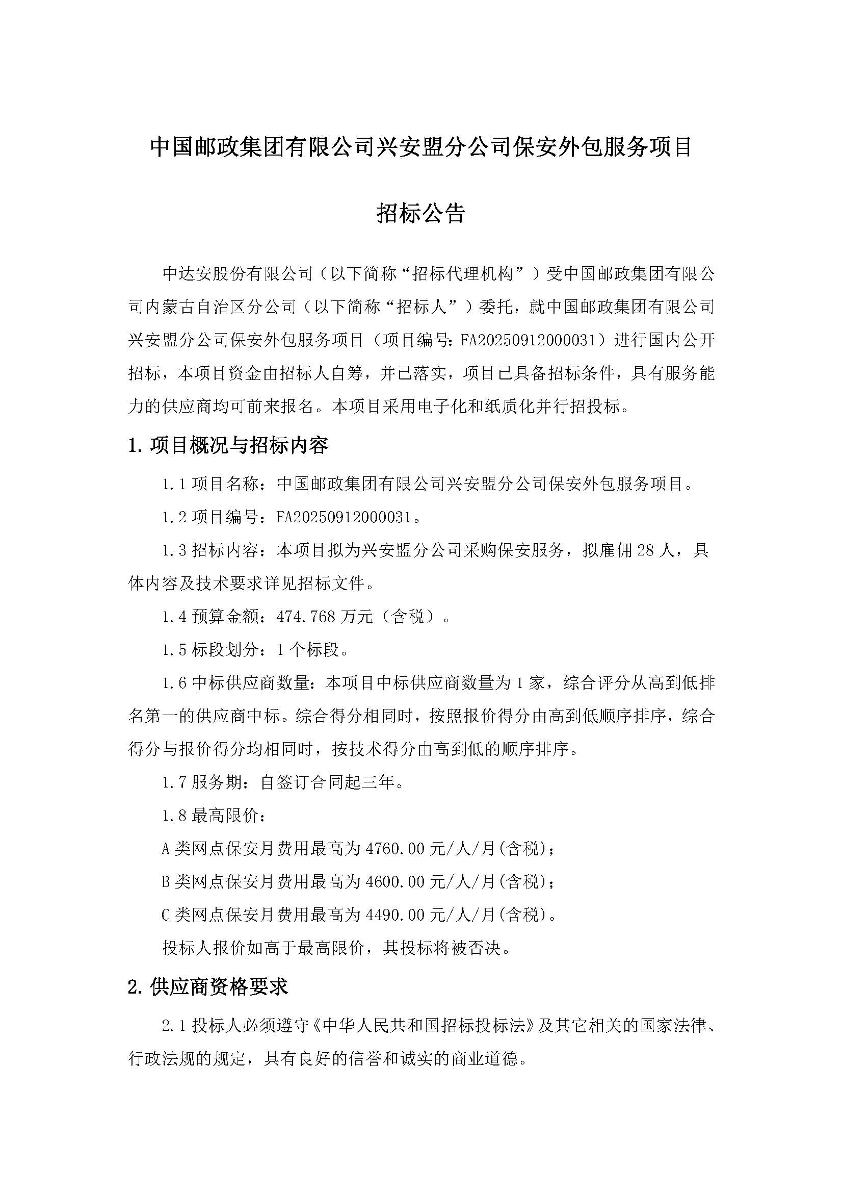 中國郵政集團(tuán)有限公司興安盟分公司保安外包服務(wù)項目招標(biāo)公告