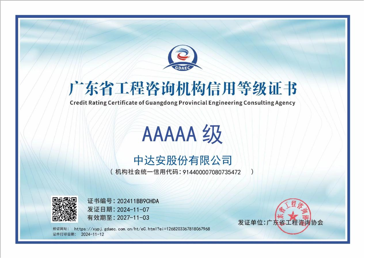 廣東省工程咨詢機構(gòu)信用評價5A級