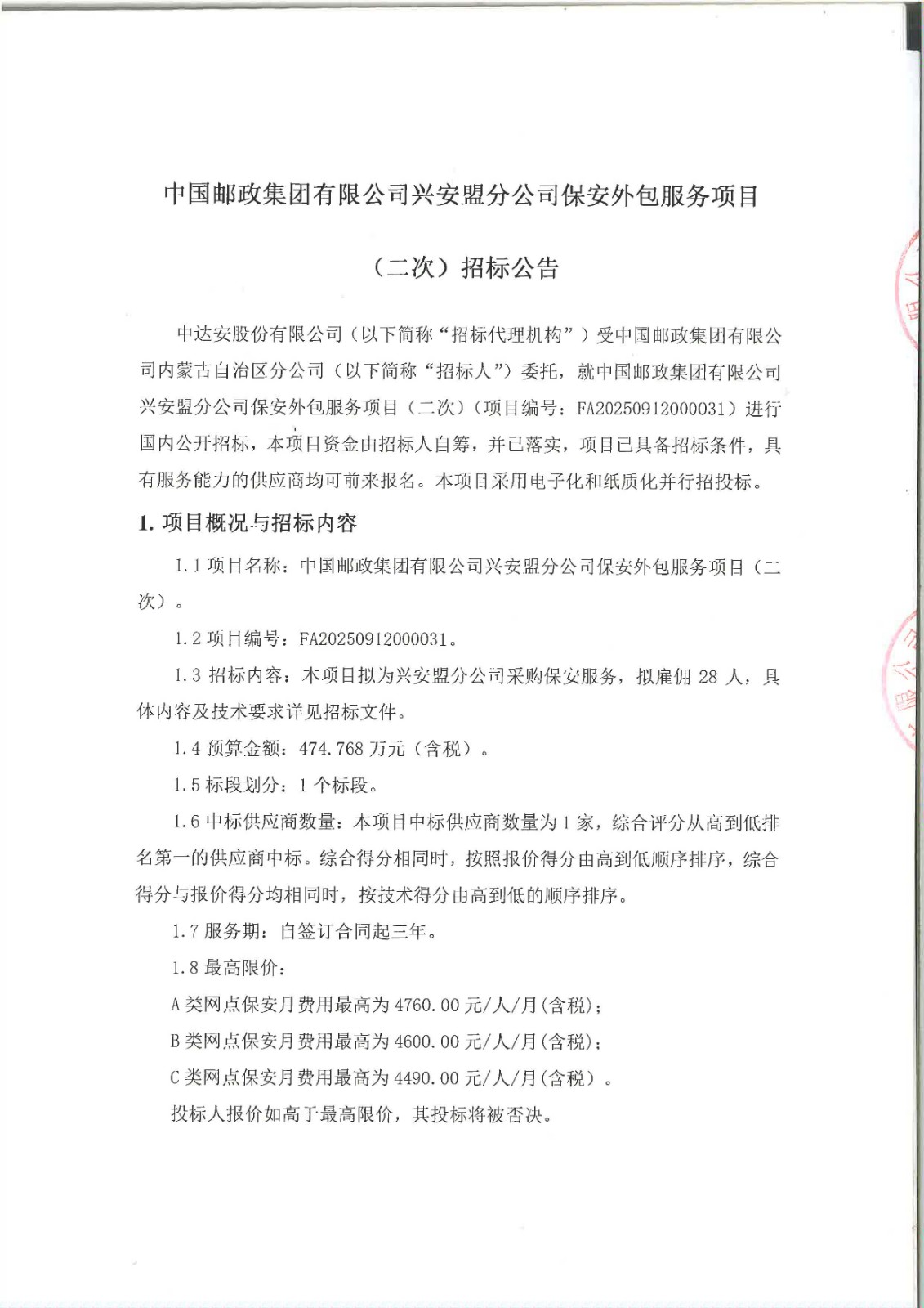中國(guó)郵政集團(tuán)有限公司興安盟分公司保安外包服務(wù)項(xiàng)目(二次)招標(biāo)公告.pdf