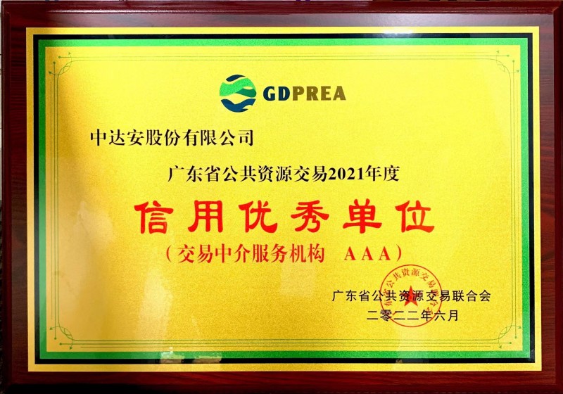 廣東省公共資源交易信用優(yōu)秀單位(2021年度AAA級)-交易中介服務(wù)機構(gòu)