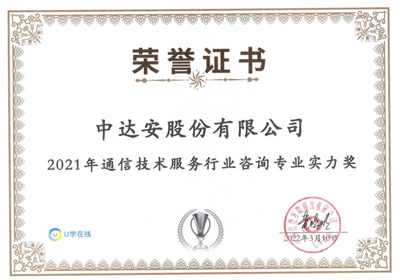 2021年通信技術(shù)服務(wù)行業(yè)咨詢專業(yè)實力獎榮譽證書