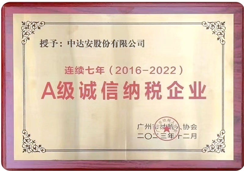 連續(xù)七年(2016-2022)A級誠信納稅企業(yè)