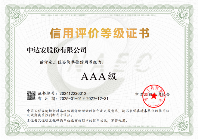 中國工程咨詢協(xié)會工程咨詢單位信用評價等級證書AAA級