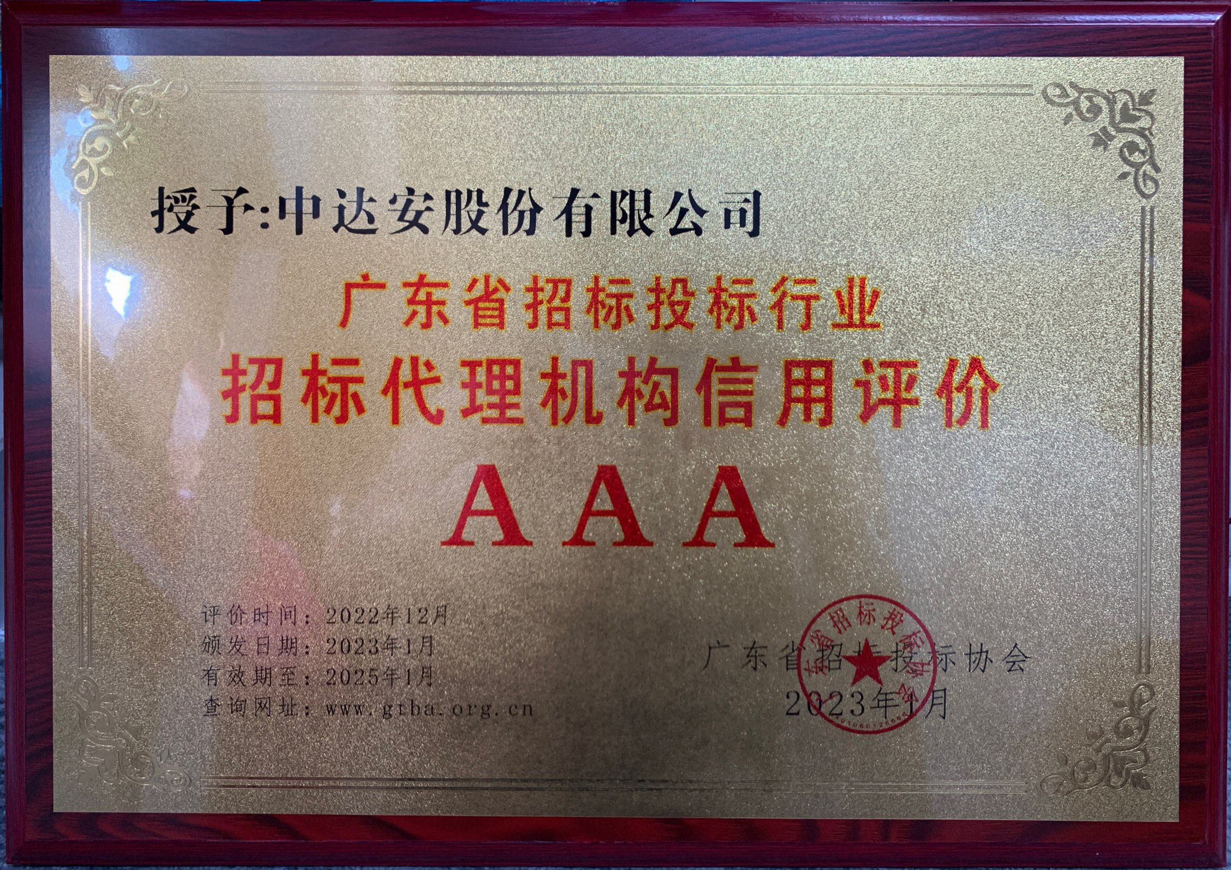 廣東省招標投標行業(yè)招標代理機構信用評價AAA