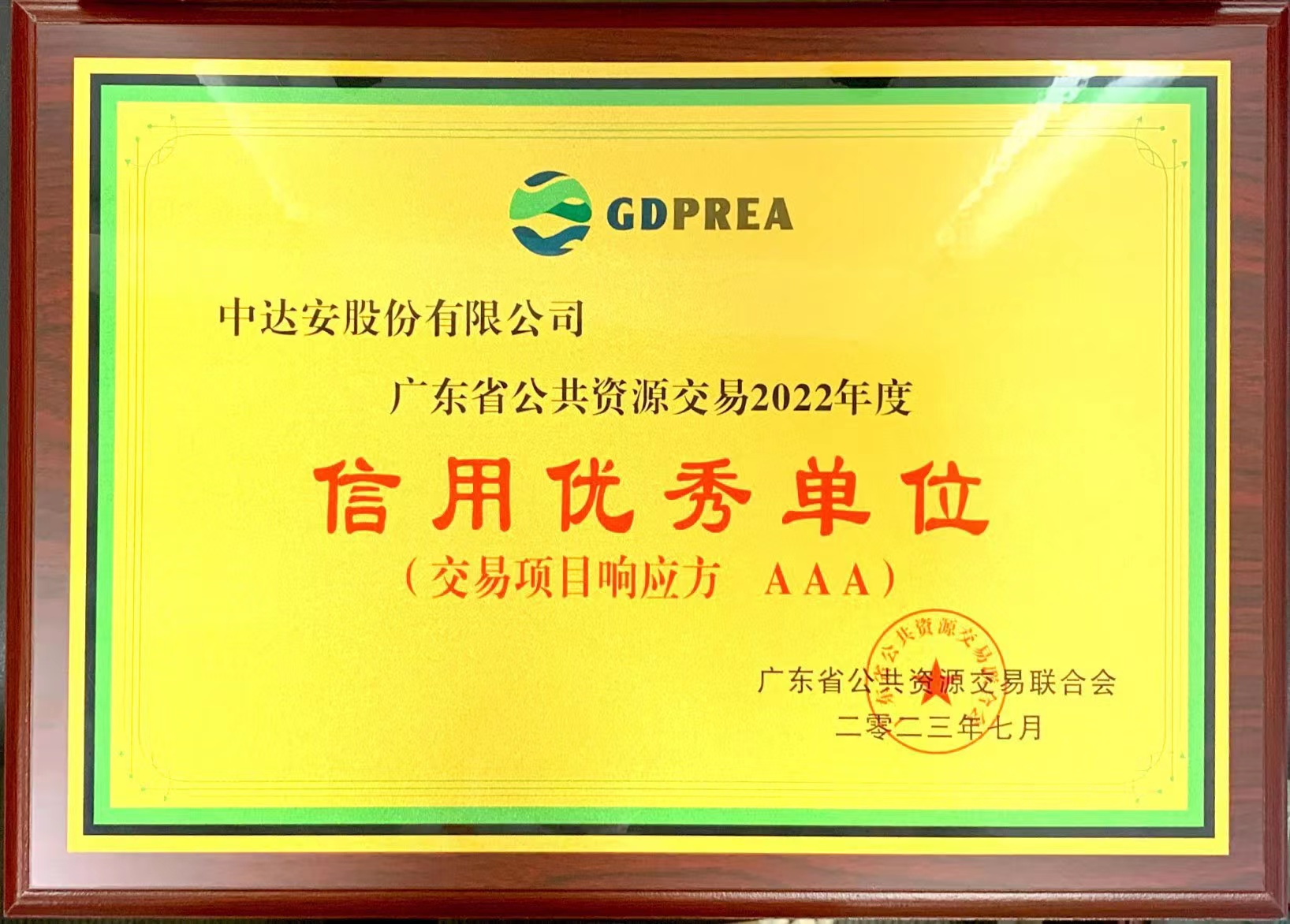廣東省公共資源交易信用優(yōu)秀單位(2022年度AAA級)-交易項目響應方